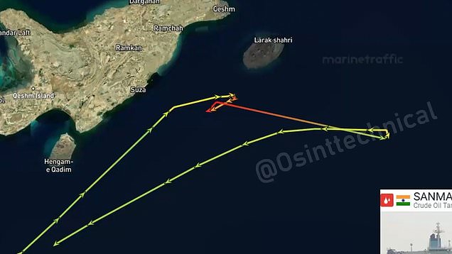 Tracking showed that the oil tanker attempted to leave the Persian Gulf through the Strait of Hormuz,before turning around and fleeing.